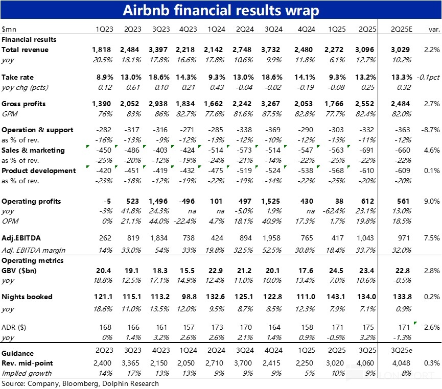 另類住宿龍頭 Airbnb$愛彼迎(ABNB.US) ,於 8 月 7 日早美股盤後,公佈了 2025 財年 2 季度財報,整體來看,當季業績看似不差,主要財務指標普遍好於不算高的預期,但底層經營指標仍有走弱趨勢,要點如下: