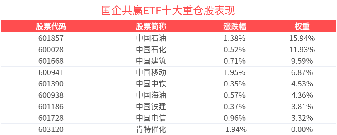 国企共赢ETF紧密跟踪富时中国国企开放共赢指数,富时中国国企开放共赢指数旨在反映在中国内地和香港上市的中国国有企业(国企)的表现,重点关注于全球化和可持续发展。本指数旨在用于创建指数跟踪基金,以及用作业绩表现基准。富时中国国企开放共赢指数由100只成分股构成,包括80个A股公司和20个在香港上市的中国公司。