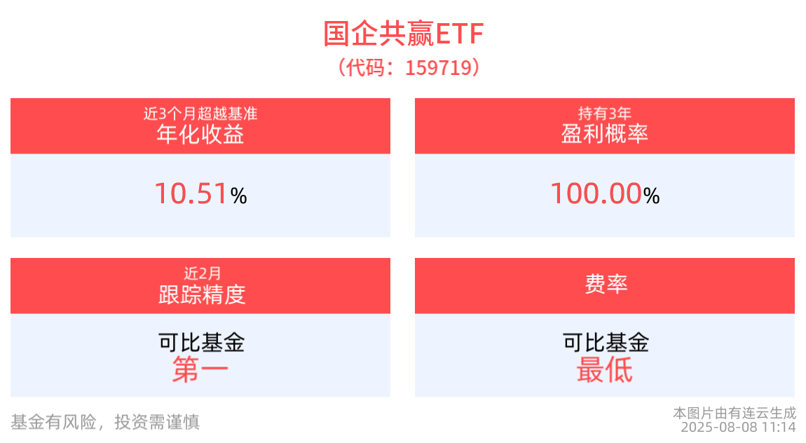 跟踪精度方面,截至2025年8月7日,国企共赢ETF近2月跟踪误差为0.114%,在可比基金中跟踪精度最高。