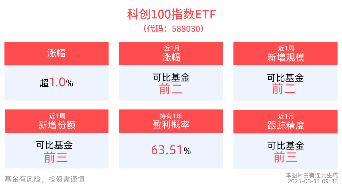 跟蹤精度方面,截至2025年8月8日,科創100指數ETF近1月跟蹤誤差為0.013%,在可比基金中跟蹤精度較高。