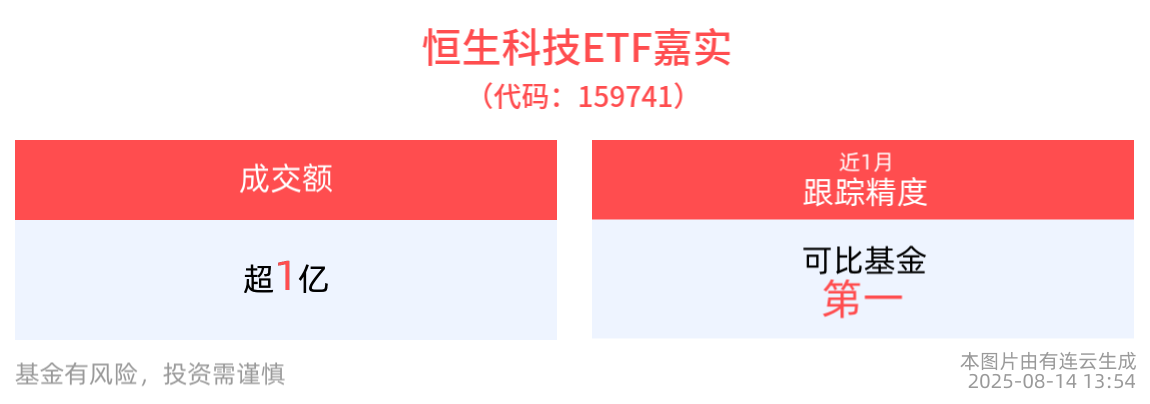 流動性方面,恒生科技ETF嘉實盤中換手12.5%,成交1.06億元,市場交投活躍。拉長時間看,截至8月13日,恒生科技ETF嘉實近1年日均成交1.51億元。
