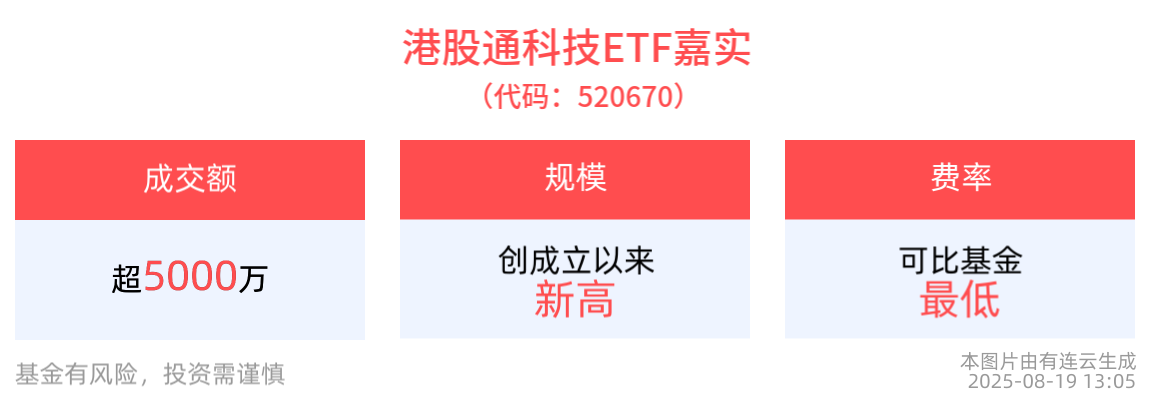 流動性方面,港股通科技ETF嘉實盤中換手23.04%,成交5796.79萬元,市場交投活躍。