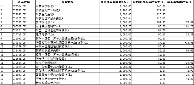 而年内涨幅超80%的产品就有15只,其中永盈科技智选A、长城医药产业精选A、华安医药生物A等5只产品涨幅超100%。