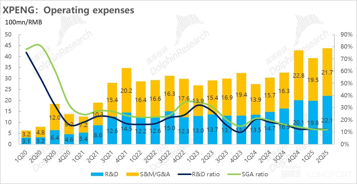 從這個季度的情況來看,小鵬的研發費用達到 22 億,略高於市場預期 20.8 億。