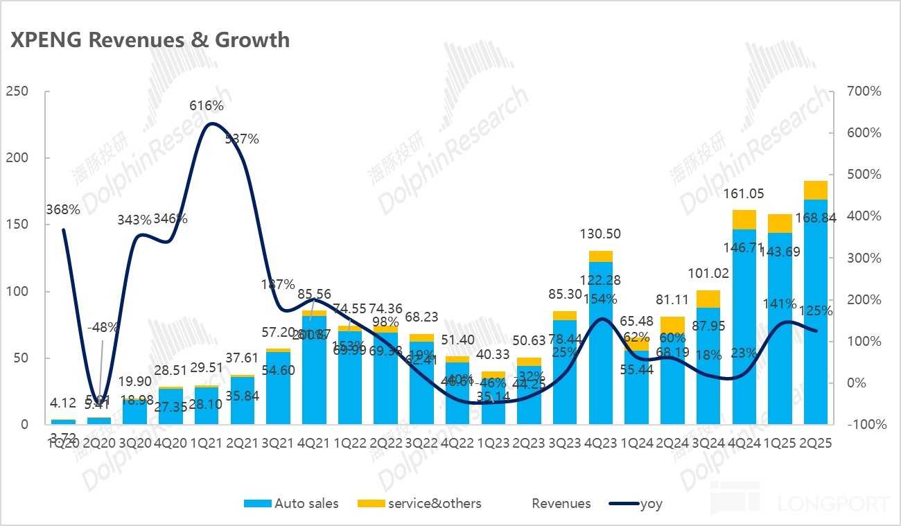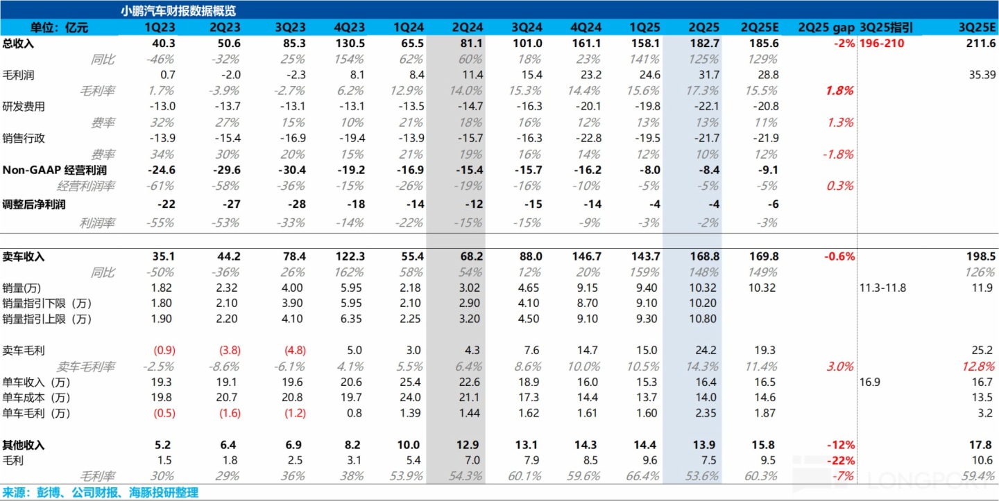 二季度小鵬實現總收入 183 億,略低於市場預期 186 億,主要因為服務和其他業務收入的環比下滑,但汽車業務仍然實現了超預期的表現。