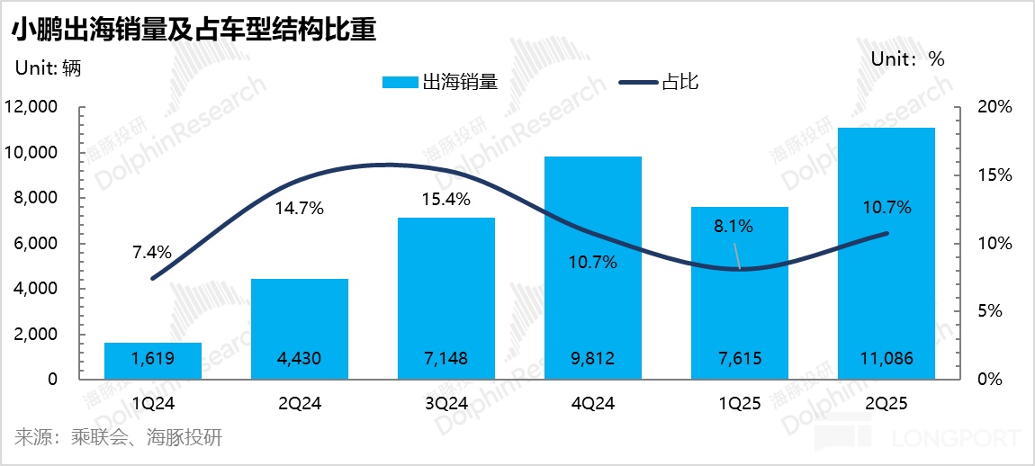 二季度小鵬出海銷量 1.1 萬輛,在車型結構中佔比環比提升 2.6 個百分點至 10.7%,也一定程度拉高了整體的賣車單價。