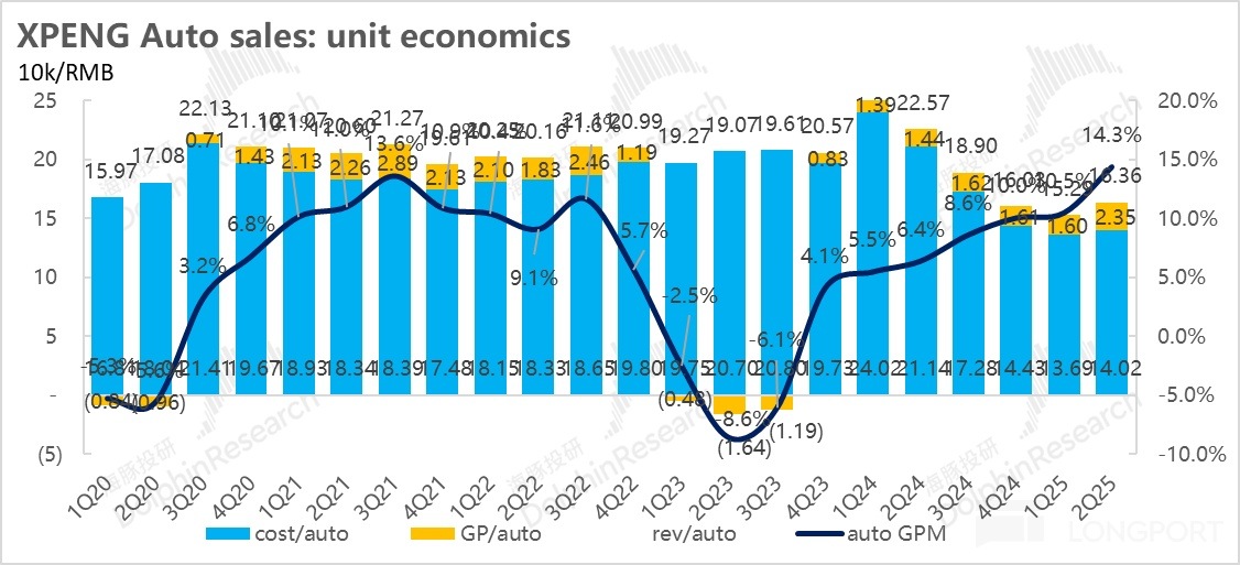二季度,小鵬單車成本 14 萬元,成本端的強控制能力主要由於: