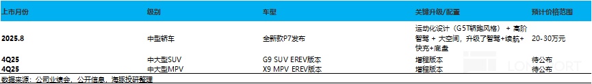 當前市場主要的博弈點是在新 P7 能否爆銷,而 P7 的定價是最為關鍵的影響因素,市場預期新 P7 由於是優先側重高端定價和品牌建設而非銷量的車型,市場預計定價約 25-30 萬元,所以對這款車型的銷量預計不高,而如果這款車型定價超預期帶來的爆銷,將是股價的上行催化劑。
