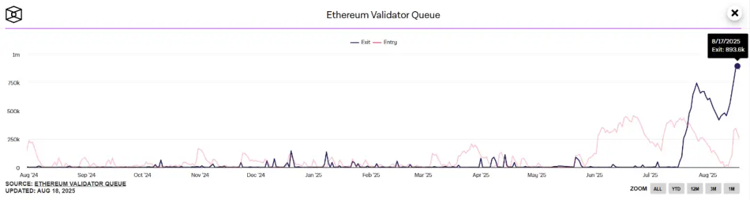 當然近期也出現了一個值得關注的逆向趨勢——自 7 月 16 日起,ETH 解質押請求驟增,驗證者退出請求從不足 2000 飙升至 7 月 22 日的 47.5 萬,等待時間也從不足一小時拉長至 8 天以上。