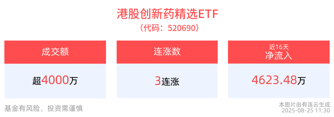 流動性方面,港股創新藥精選ETF盤中換手11.71%,成交4604.36萬元,市場交投活躍。拉長時間看,截至8月22日,港股創新藥精選ETF近1周日均成交9818.35萬元。