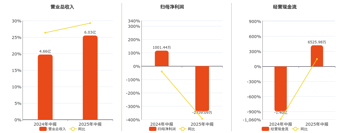 公司營業總收入為6.03億元,較去年同報告期營業總收入增加1.36億元,實現3年連續上漲,同比較去年同期上漲29.26%。歸母淨利潤為-2939.09萬元。經營活動現金淨流入為6525.98萬元,在已披露的同業公司中排名第88,較去年同報告期經營活動現金淨流入增加2.05億元。