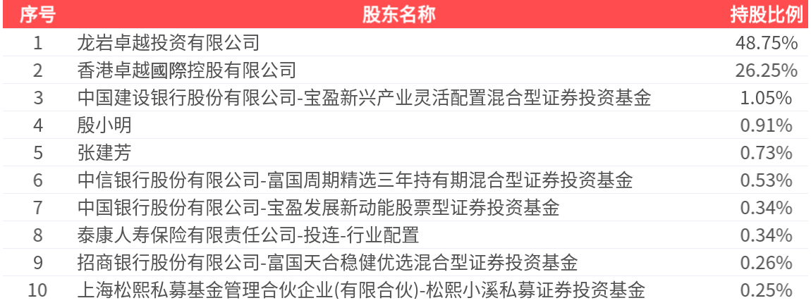 公司股東戶數為4740戶,前十大股東持股數量為9530.35萬股,佔總股本比例為79.42%,前十大股東持股情況如下: