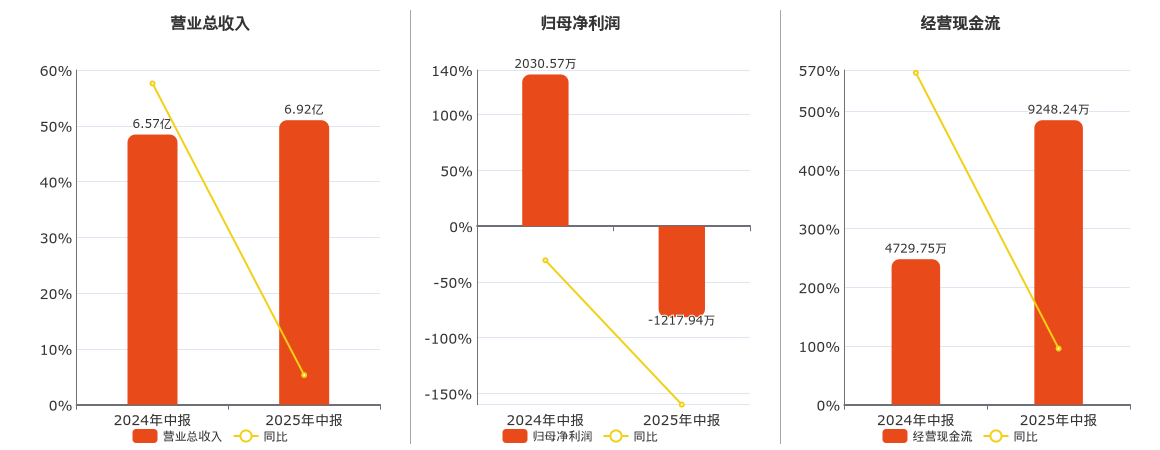 公司營業總收入為6.92億元,較去年同報告期營業總收入增加3481.10萬元,實現2年連續上漲,同比較去年同期上漲5.30%。歸母淨利潤為-1217.94萬元。經營活動現金淨流入為9248.24萬元,在已披露的同業公司中排名第34,較去年同報告期經營活動現金淨流入增加4518.49萬元,實現2年連續上漲,同比較去年同期上漲95.53%。