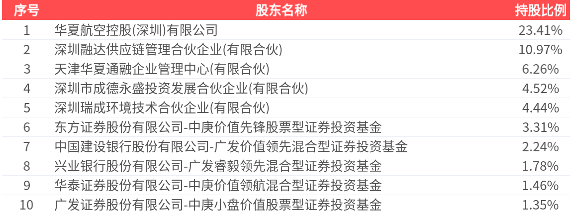 公司股東戶數為2.22萬戶,前十大股東持股數量為7.63億股,佔總股本比例為59.73%,前十大股東持股情況如下: