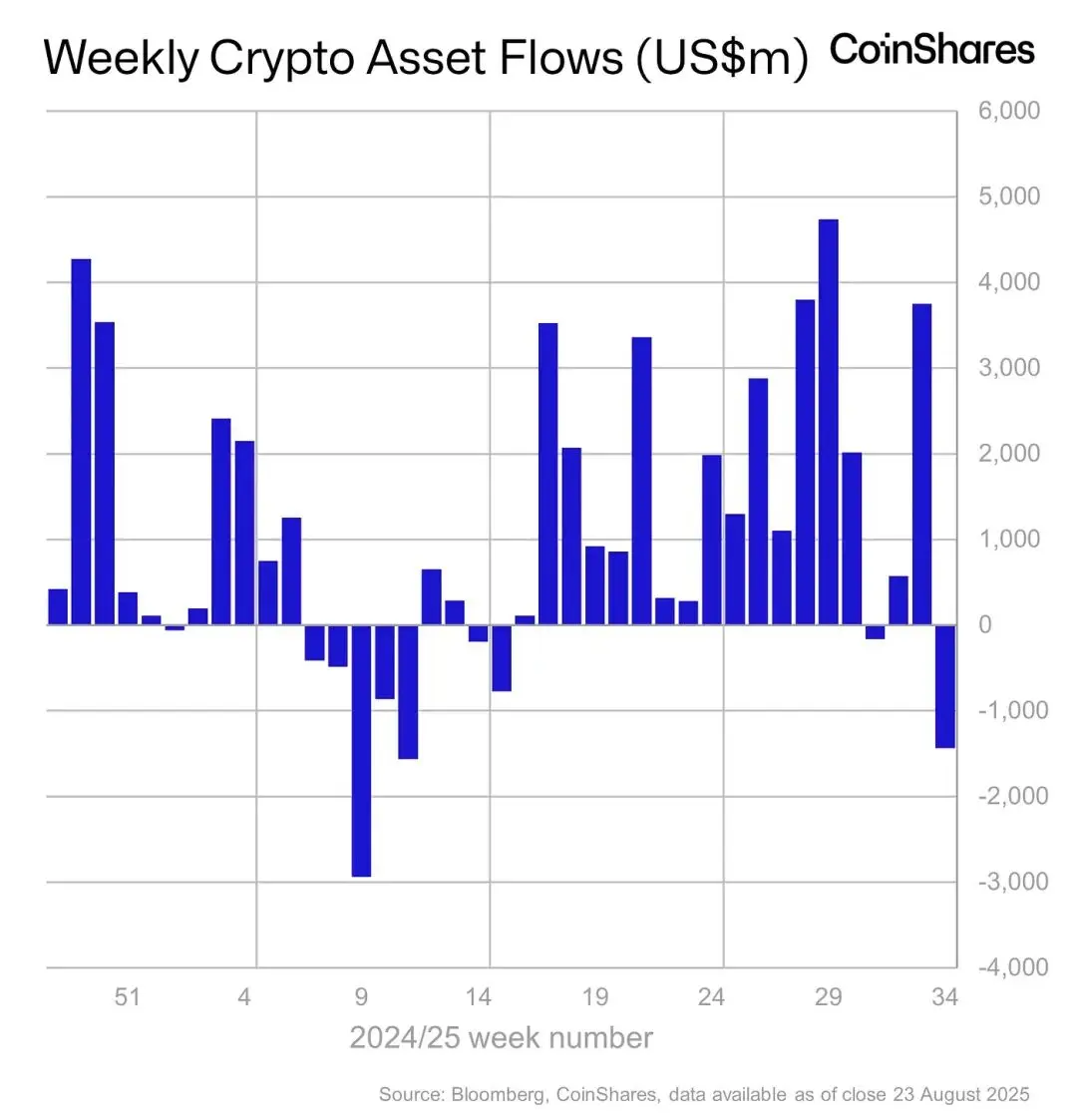 機構資金上周淨流出14億美元,為3月以來最高水平。