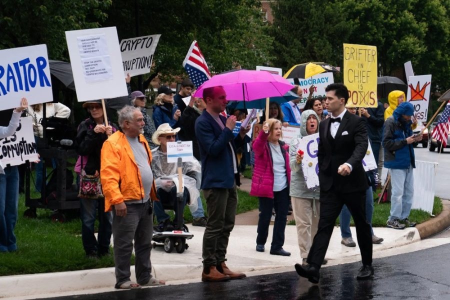 今年 5 月下旬,特朗普在華盛頓郊外的私人鄉村俱樂部設宴款待 TRUMP 代幣持有量前 220 名的用戶,希望借此機會「攀高枝」的群體紛紛出動,在宴會開始前瘋狂購入 TRUMP 代幣。但結果讓很多人大跌眼鏡,不僅特朗普本人只是短暫出席並發表了無關痛癢的演講,並且也沒有提前宣傳的與特朗普「親密接觸」的機會,宴會的餐食更是普通到讓人無力吐槽。一國總統的如此行徑也引發了民眾的抗議活動。