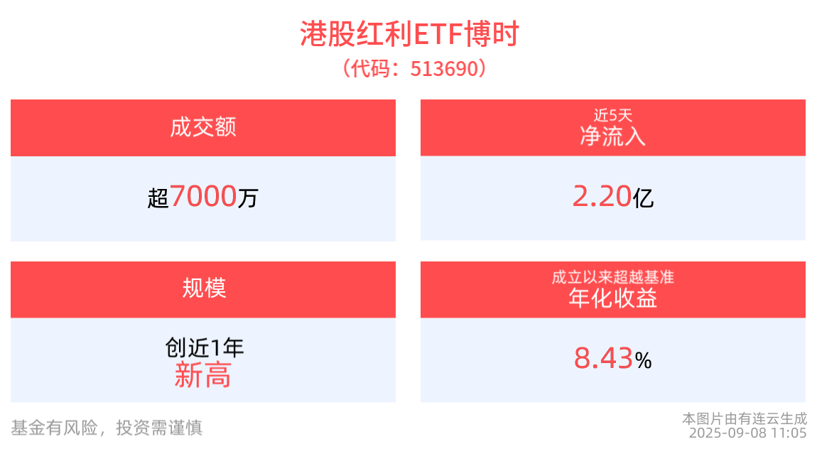 流動性方面,港股紅利ETF博時盤中換手1.46%,成交7243.87萬元。拉長時間看,截至9月5日,港股紅利ETF博時近1月日均成交2.18億元。