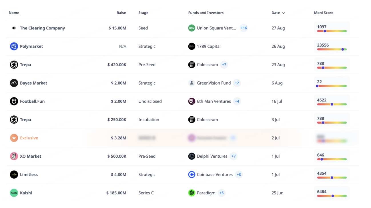 自 2024 年美國大選帶動Polymarket爆火以來,預測市場已經成為Web3與傳統金融機構共同關注的前沿賽道。大選期間,鏈上市場展現出比傳統民調更快、更精準的預測能力,讓外界第一次真正感受到“價格即概率”的力量。2025年,這股熱潮進一步演變為資本和産品層面的全面升級,6月至今就有近十個相關項目完成融資,投資方涵蓋 Coinbase、Paradigm、Delphi 等頂級機構。資本的押注背後,是區塊鏈預測市場獨有的結構優勢:開放的準入機制顯著降低參與門檻,所有交易記錄透明且不可篡改,用戶無需依賴中介即可用真金白銀下注,最終價格自然成為集體智慧的量化表達。