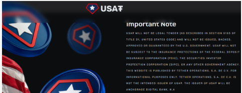 USAT網站由Tether Operations, SA de CV發佈,僅供參考,Tether Operations, SA de CV並非USAT的預期發行方(the intended issuer),USAT的發行方將是Anchorage Digital Bank, NA。