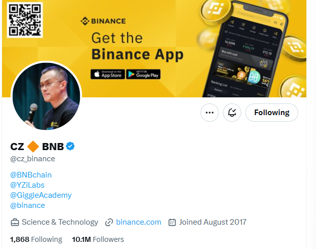 PANews 9月17日消息,幣安創始人趙長鵬於今晨更新其X賬號個人簡介,由“ex-@binance”更新為“@binance”,或暗示其即將回歸幣安。
