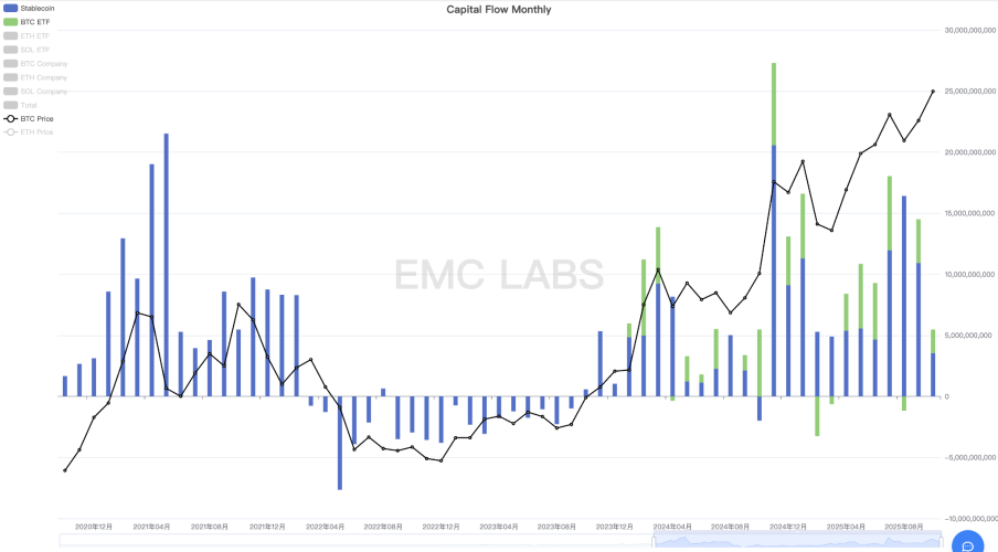這一段市場動力來自降息和特朗普加密友好政策預期所帶來的投機行為,加密市場在這一階段獲得創記錄的資金流入。
