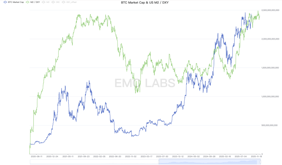 加息周期臨近尾聲,銀根縮緊導致美國區域銀行(矽谷銀行、第一共和銀行)出現破産案例,美國政府被迫緊急釋放流動性。美國M2/DXY指數開始觸底反彈,為美國股市及BTC觸底反彈提供了外部環境。