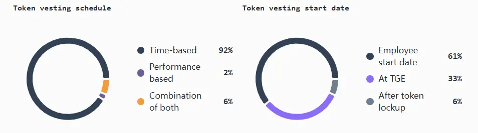 在歸屬方面,大多數團隊遵循四年期計劃,並設置一年的“懸崖期”,但也有一些團隊嘗試了混合模式,將基於時間與裡程碑驅動的解鎖相結合。