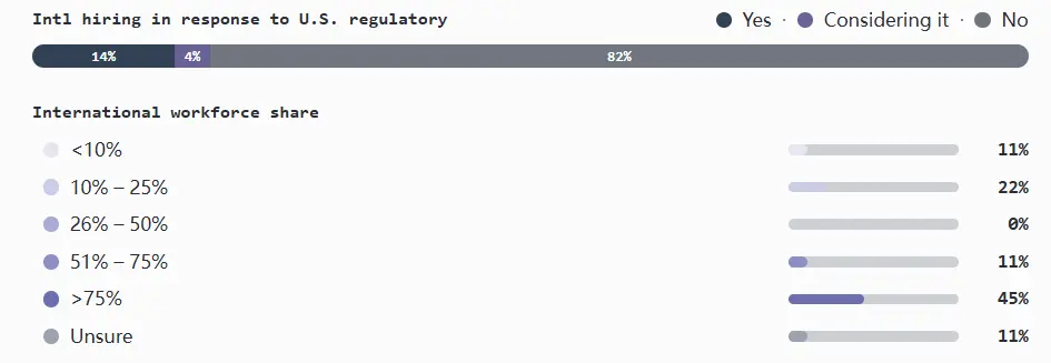 同時擁有美國和國際團隊的公司最有可能提及受監管驅動的舉措,而僅在美國開展業務的公司大多沒有反應,只有少數公司考慮做出改變。