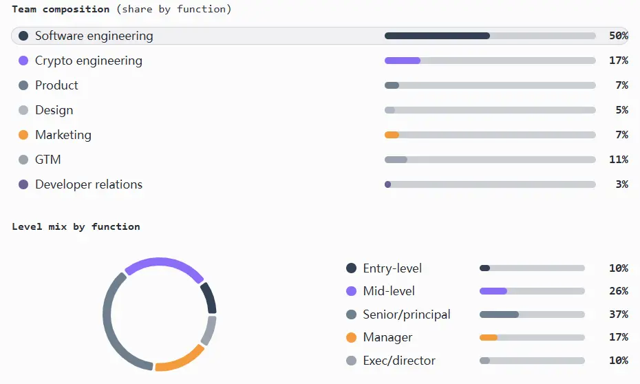 以下是軟件工程、加密工程、開發者關係、産品管理、設計、市場營銷以及市場拓展等各個崗位的薪酬數據。