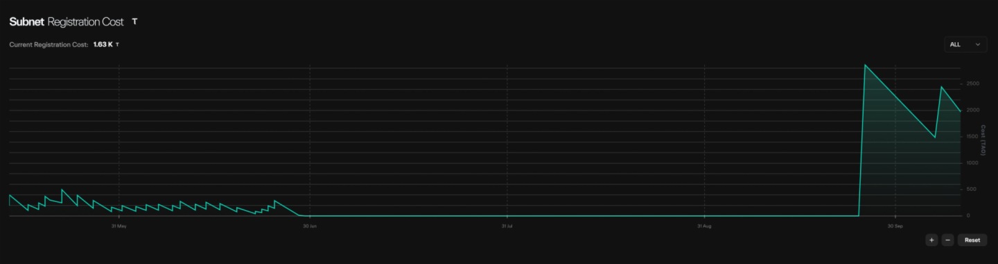 Bittensor 的整體願景是打造一個神經互聯網。過去四年間,Bittensor 建立了一個忠實的社區,匯聚了 DCG 等頂級風投、Sami Kasab 等加密研究人員,以及許多每天都在努力推動這一願景的天才。他們創作内容、做播客、開發産品,並且正在掀起一場運動。Bittensor 還構建了一個子網生態係統,目前約有 126 個子網處於活躍狀態。當前子網的成本約為 1600 個 TAO(64 萬美元),這個成本是動態的,會根據新子網注冊的頻率不斷變化。在暫停了幾個月之後,新的子網注冊現已重新開放。
