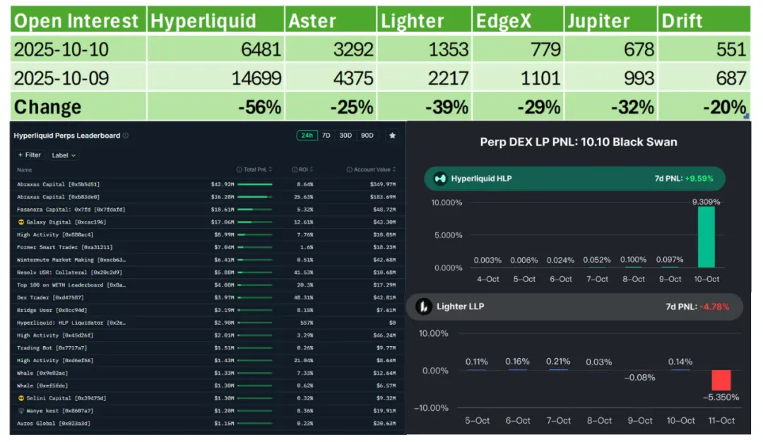 從以上數據看,Hyperliquid 在 Perp DEX 是當之無愧的第一,即使遭遇最大比例的回撤,但依然是絕對的 OI 王者,統治力的飛輪已經建立,而 Lighter 等 HL Killer 的金庫産品 LLP 還得多練。