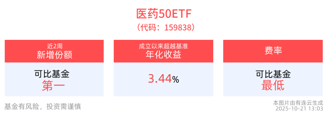 醫藥50ETF(159838):跟蹤中證醫藥50指數,一鍵覆蓋A股醫藥生物核心50強,兼顧創新藥、醫療服務與器械全産業鏈。