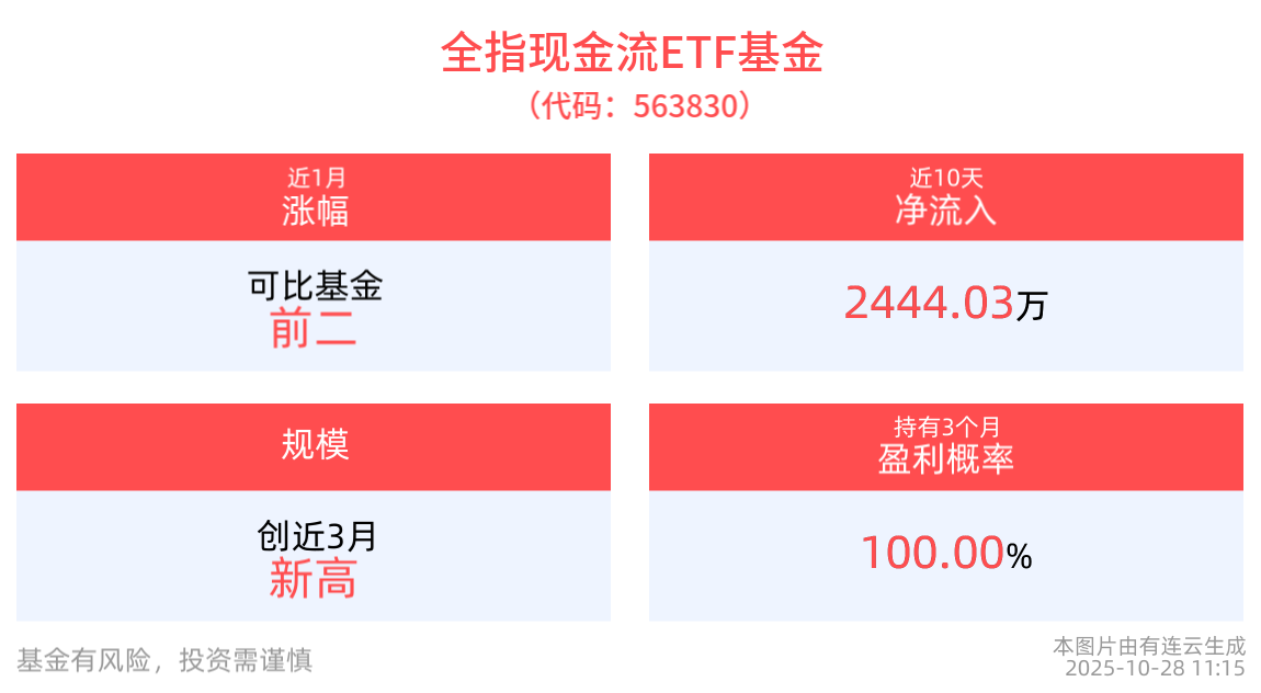 流動性方面,全指現金流ETF基金盤中換手2.07%,成交339.33萬元。拉長時間看,截至10月27日,全指現金流ETF基金近1月日均成交687.67萬元。
