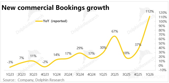 具體來看,本季新簽企業合同金額同比暴漲112%,公司表示主要是OpenAI向Azure簽訂的使用承諾合同(其中不包括幾天前簽訂的$2500億承諾)。