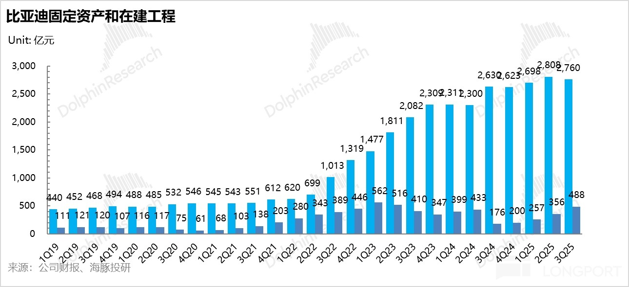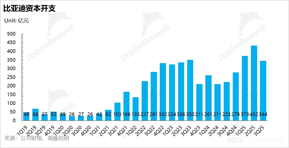 ① 比亞迪的資本開支節奏本季度有所放緩,固定資産也環比上季度有所下滑,預計三季度整體攤折金額可能有所下滑;