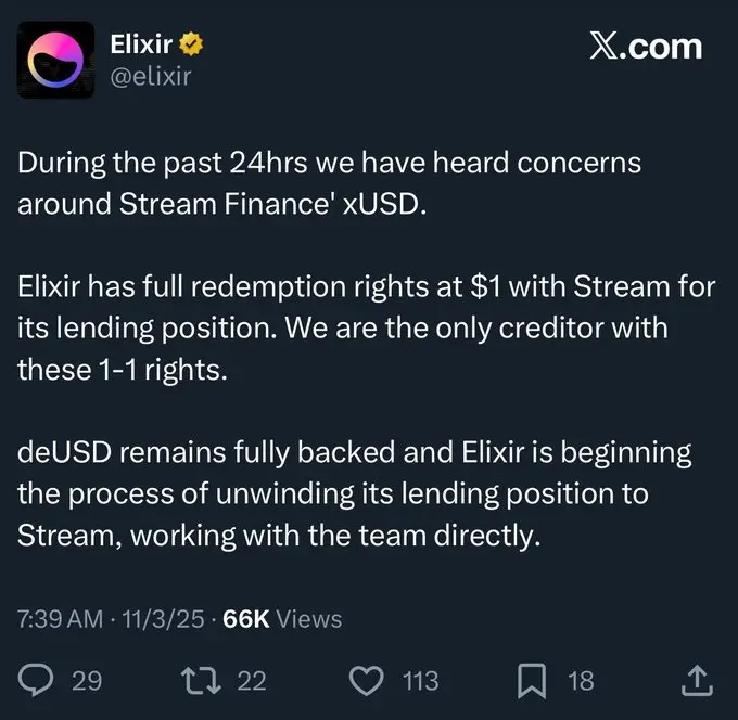 由於此事未向這些DeFi用戶披露,如今許多用戶對Stream和Elixir感到極為憤慨:他們不僅蒙受資金損失,還要被動承擔損失分攤,以確保具有華爾街背景的美國富人得以保全利潤。
