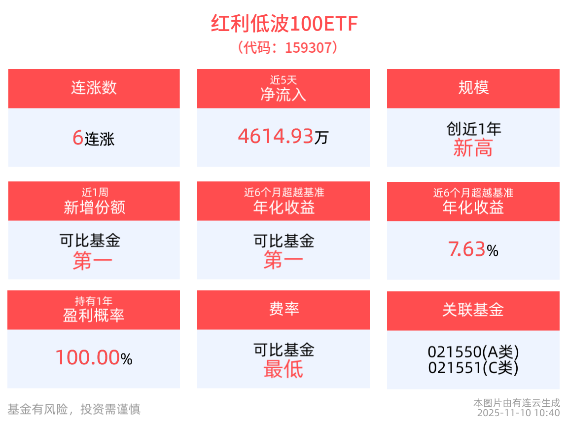 規模方面,紅利低波100ETF最新規模達15.62億元,創近1年新高。