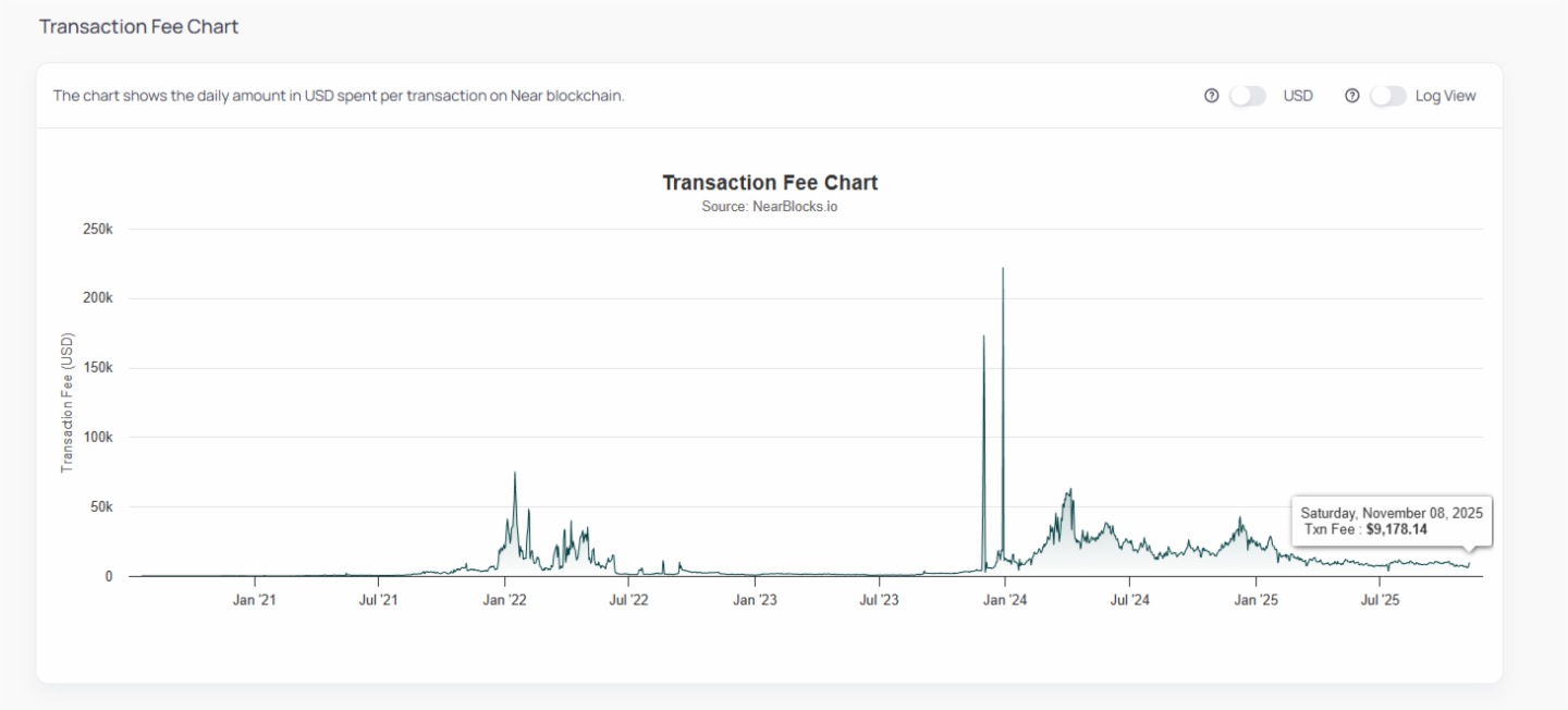 這也說明了為什麼一邊是NEAR Intents的熱鬧非凡,一邊是NEAR的鏈上費用每天仍維持在幾千美元左右的原因。