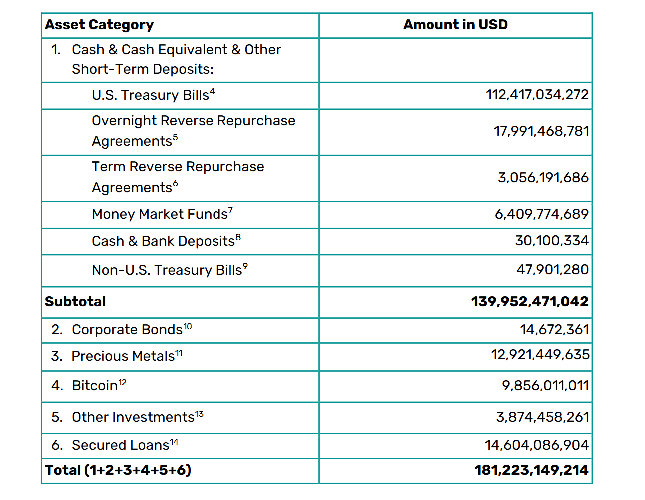 這正是Tether的“七寸”。根據Tether的Q3報告,其總儲備高達1812億美元,而已發行的USDT為1744億美元 。這其中,129億美元的黃金和99億美元的比特幣,以及其他投資和貸款,在《GENIUS法案》的定義下全部是“非合規資産”。