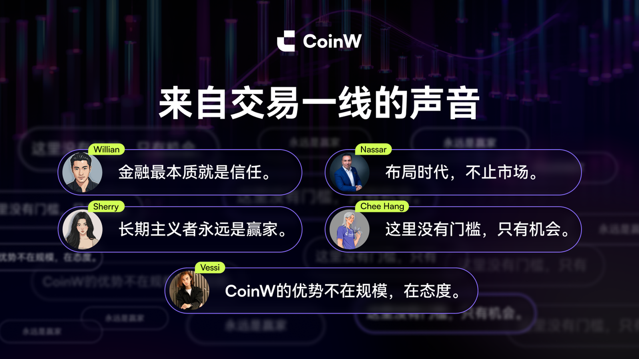 在八周年之際,CoinW發起全球UGC徵集活動,邀請用戶分享與平台的故事與見解。隨後,團隊對來自全球30餘位用戶、合作夥伴、員工進行深度訪談,從實際案例中提煉出市場趨勢與使用需求。