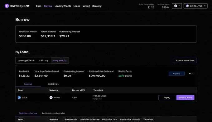 TownSquare採用統一流動性資金池模式,貸方共享同一個資金池,而借方可構建個性化倉位。對於存在關聯性的資産(如MON與MON-LST),TownSquare還提供"效率模式",允許尋求擴大方向性敞口的交易者獲得更高的貸款價值比。