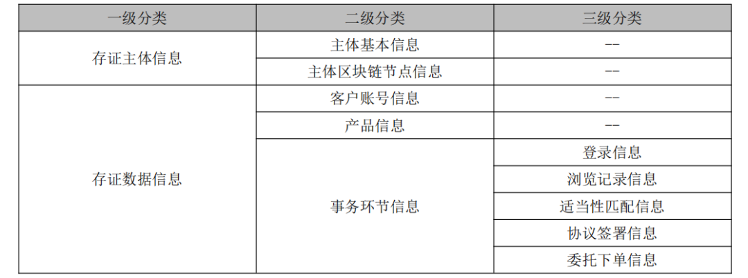 根據徵求意見稿,在底稿目錄信息方面,報送方式修改為直接和證聯鏈節點或 IPFS (星際文件係統)進行交互,部分項目信息字段和項目成員信息進行精簡,報送的底稿目錄結構要求沒有變化。券商需根據《證券公司投資銀行類業務工作底稿電子化管理係統建設指引》[27]要求,將 2021 年 1 月 1 日起承攬的項目進行報送,報送的項目類型詳見數據字典項目類型。券商被允許在未報送完整項目信息前,優先報送底稿目錄信息,後續再補充完整項目信息。
