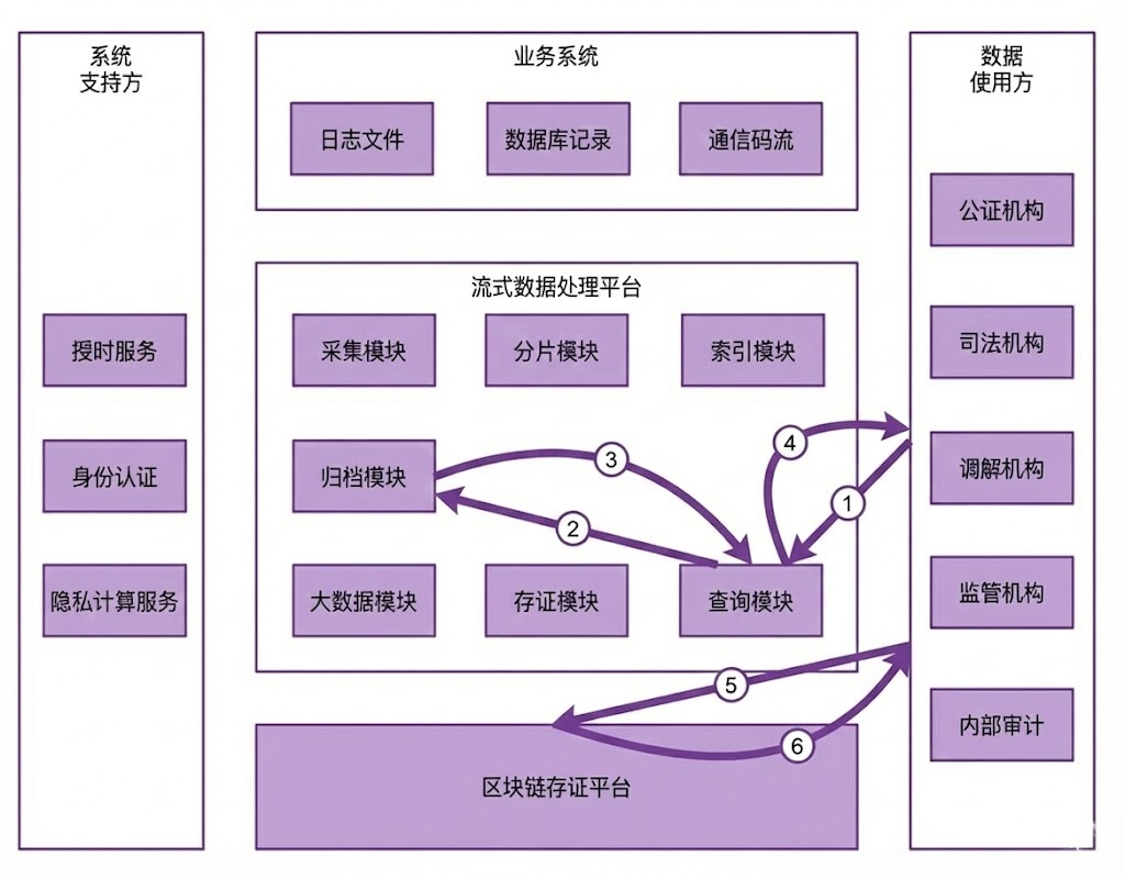 審計日誌需保證全環節可追溯。政策要求存證行為過程可溯源,實踐中需記錄三類日誌。第一類是操作日誌,需要包含“操作用戶、操作時間、數據 ID、操作類型(新增/修改/刪除)”,日誌不可篡改(採用區塊鏈存證)。第二類是係統日誌,需要記錄節點同步、算法調用、密鑰更新等係統行為,留存 ≥6 個月。第三類是審計日誌,需要定期(每月)生成存證合規報告,包含“上鏈數據量、出證次數、異常數據量”,自動推送至合規部門。