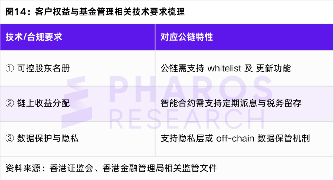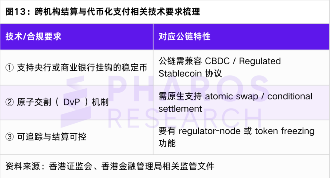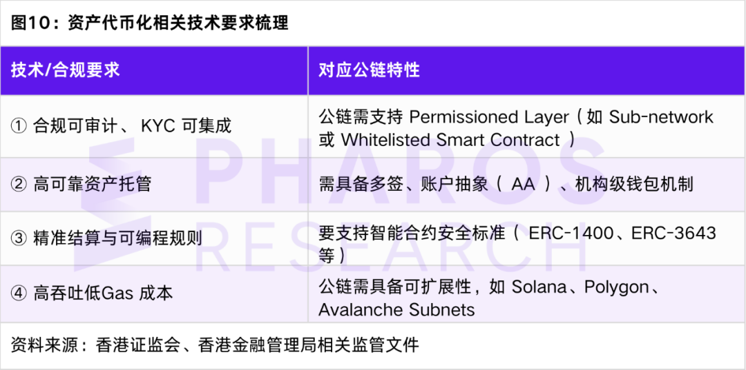 典型公鏈選擇:Solana(高性能)、Ethereum Layer 2(合規生態成熟)、HashKey Chain(自帶合規接口)、Pharos(實時+EVM 兼容)。