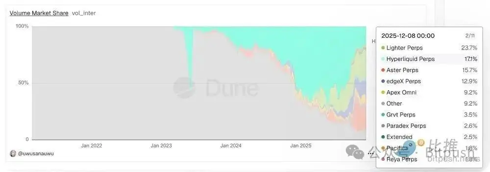 Lighter和Aster只是鏈上競爭的兩個例子。盡管它們的交易量可能因空投獵取行為而被誇大,但它們確實提供了真實的選擇。