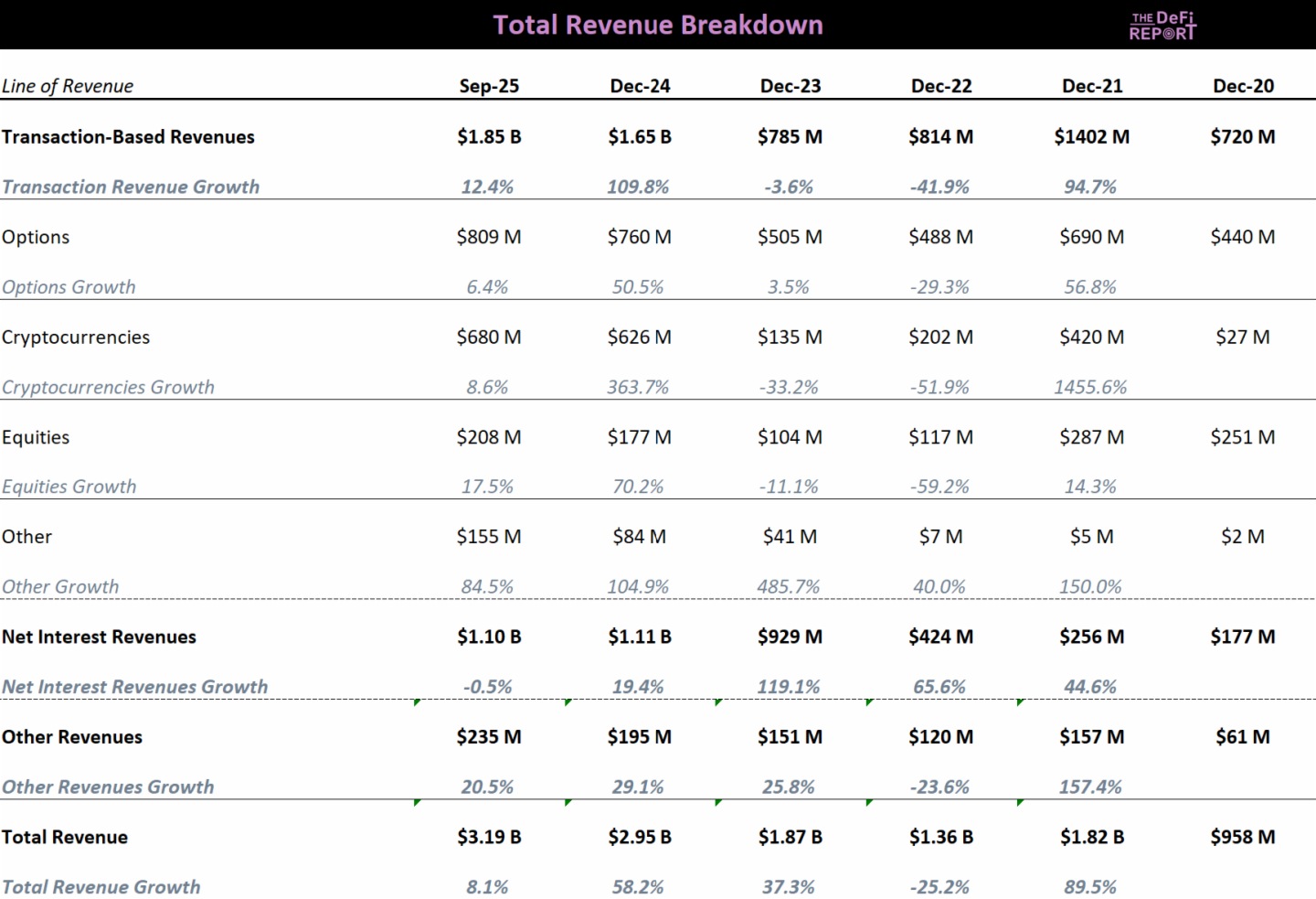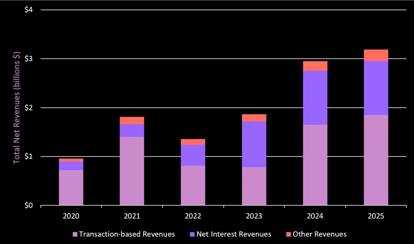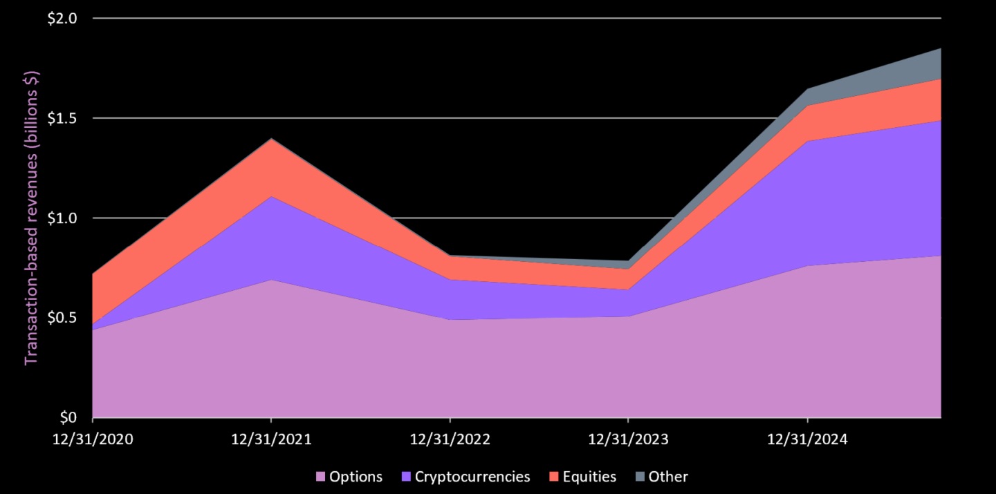 - 這表明:1)基於交易的營收在增長(涵蓋股票、期權和加密貨幣領域);2)Robinhood 一直在增加新的營收綫。