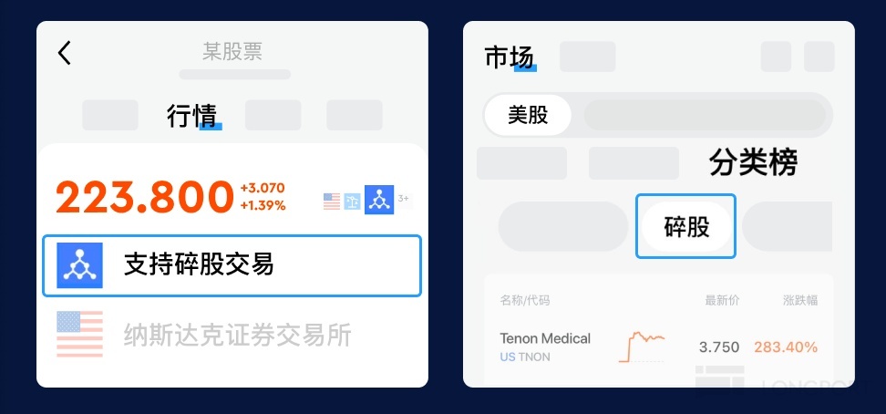 第一步,找標的:搜索你想買的股票(比如$特斯拉(TSLA.US)),點擊個股詳情頁,行情右側會展示碎股圖標。或者通過【市場】-【美股】-【分類榜】來尋找支持碎股交易的股票。