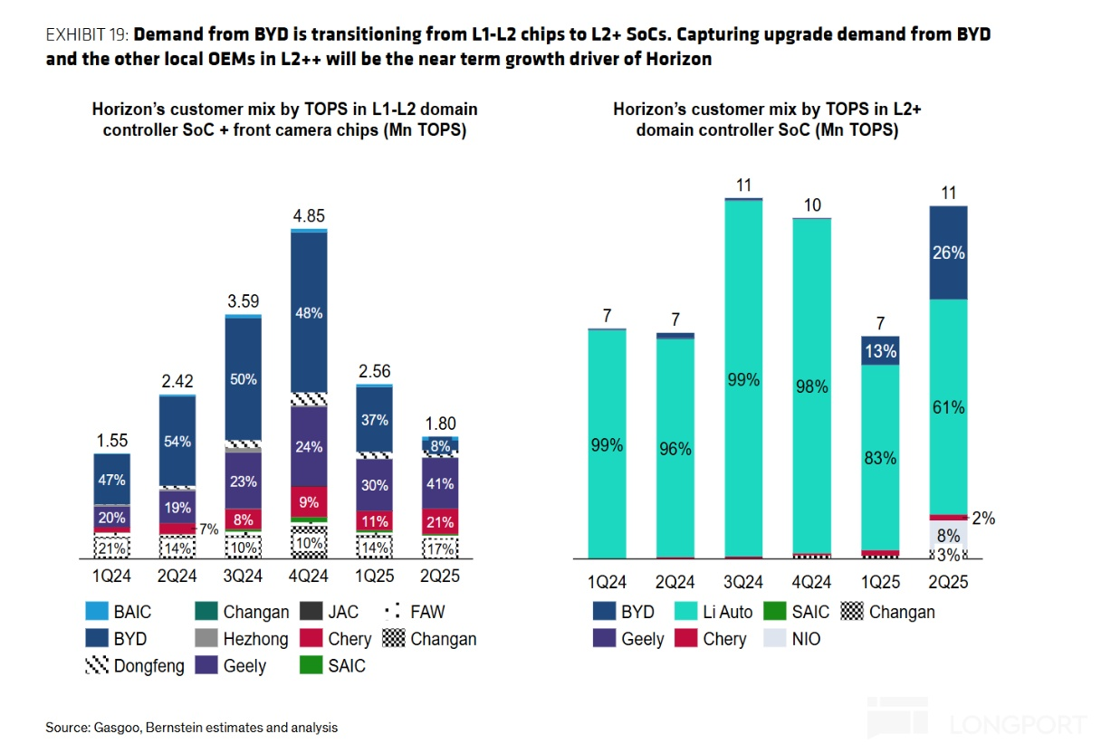 2025 年上半年就有 7.8 亿,超过去年全年,同增 250%,主要逻辑就是比亚迪、吉利、奇瑞为代表的 “智驾平权”:高速 NOA 下放至 10-20 万元大众车型,直接带动地平线中算力芯片(如 J6E/J6M)的需求。