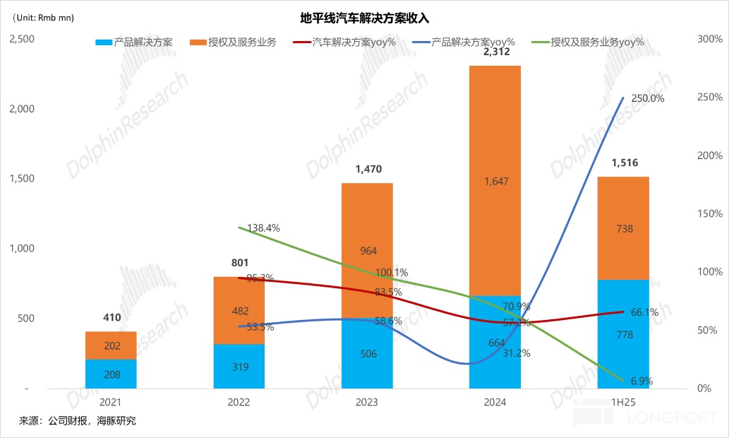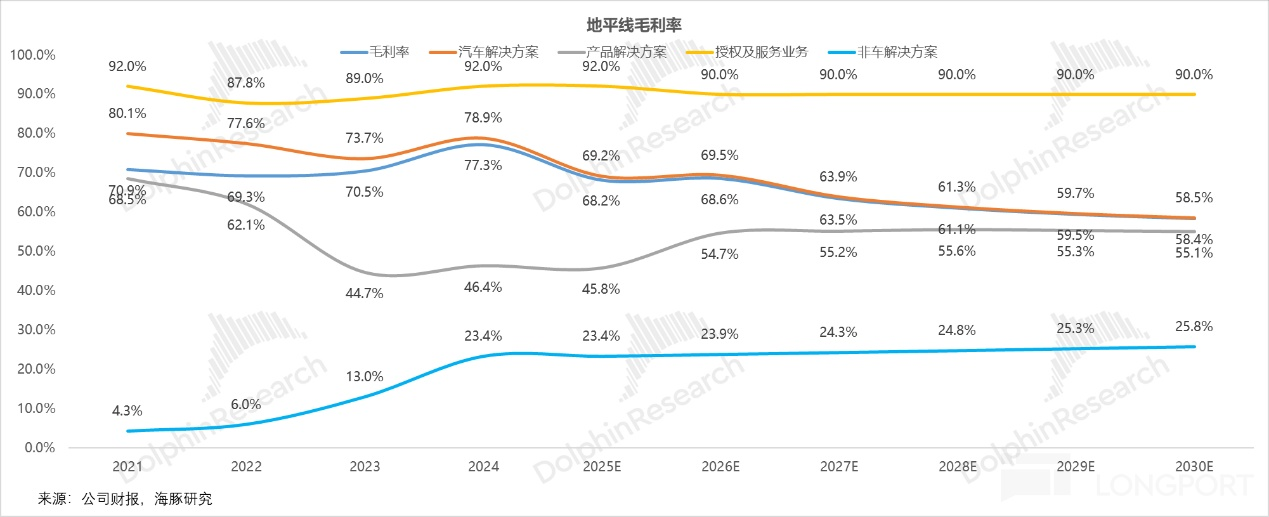 在这四种模式下,汽车解决方案业务收入可以进一步拆分为产品和授权及服务两类: