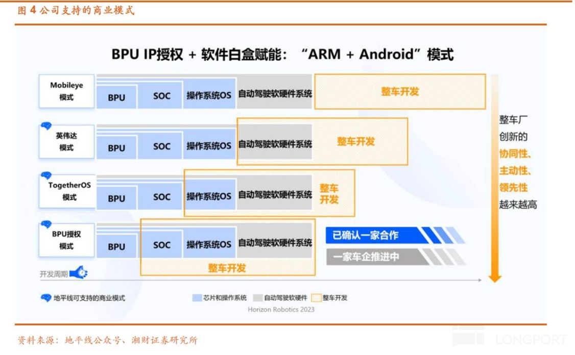 d. BPU IP 授权模式(ARM+Android):向车企授权其自研的 BPU IP 核,支持客户基于此自研芯片及全栈系统,目前这类模式的主要客户是大众。